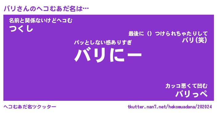 | 男性向けラノベタイトル風あだ名 | 『バリの憂鬱』『ノーゲーム・ノーバリ』 |