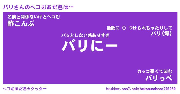 | 意味不明あだ名 | 『ペロリンバリ』『バリフォーエバー』 |