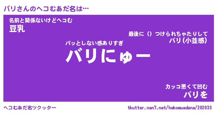 | 意味不明あだ名 | 『ペロリンバリ』『バリフォーエバー』 |