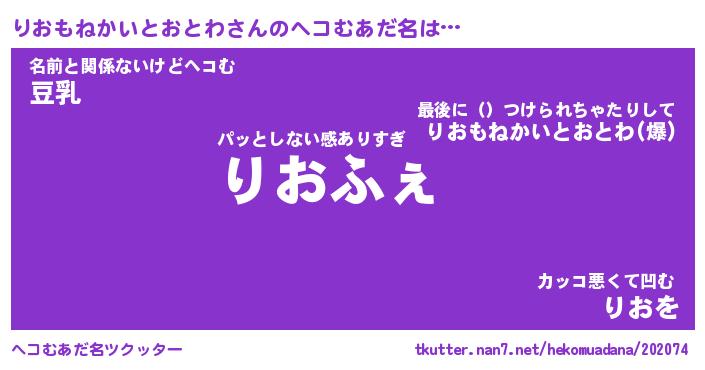 | 意味不明あだ名 | 『ペロリンりおもねかいとおとわ』 |