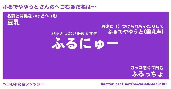 | 胡散臭い通販商品みたいなあだ名 | 『モテモテ間違いなし水晶球…その名も「ふるでやゆうと」』 |