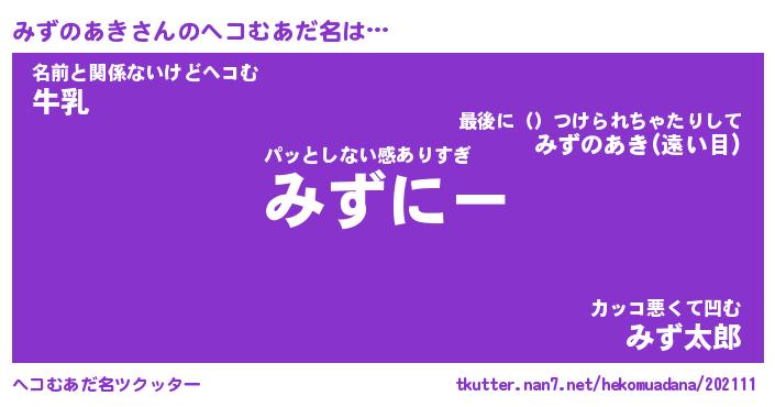 | ファンタジー風あだ名 | 『ミズフェル』『エターナルミズノアキー』 |