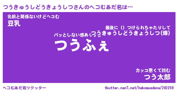 | 2回繰り返すあだ名 | 『つうつう』『つつうう』『ぬるぬる』 |