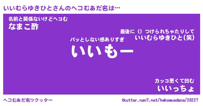 | 胡散臭い通販商品みたいなあだ名 | 『億万長者になれる霊験あらたかなお札…その名も「いいむらゆきひと」』 |