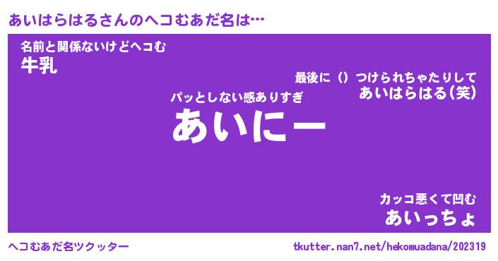 | 胡散臭い通販商品みたいなあだ名 | 『必ず成功するブレスレット…その名も「あいはらはる」』 |