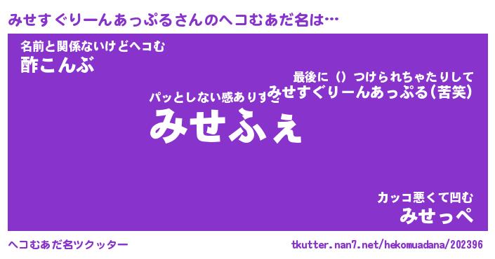 | 肩書あだ名 | 『みせすぐりーんあっぷるCEO』 |