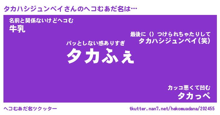 | 男性向けラノベタイトル風あだ名 | 『タカハシジュンペイの憂鬱』 |