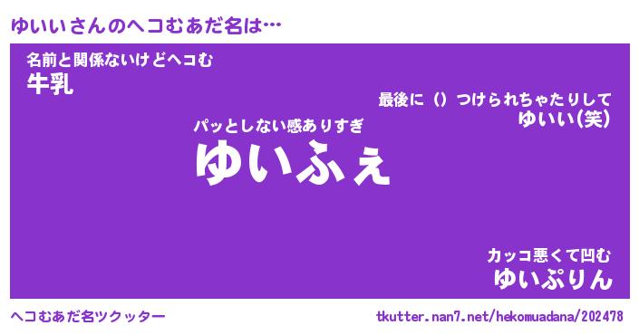 | 意味不明あだ名 | 『ペロリンゆいい』『ゆいいフォーエバー』 |