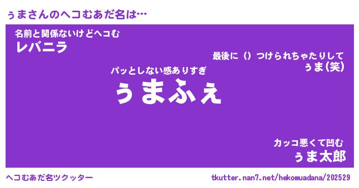| 意味不明あだ名 | 『ペロリンぅま』『ぅまフォーエバー』 |