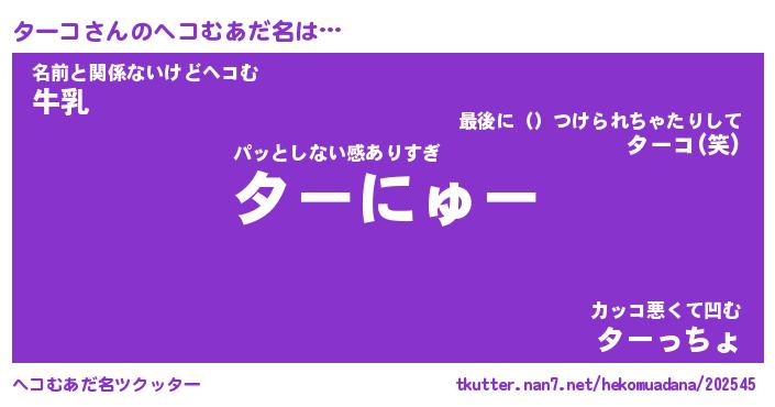 | ヒーロー風カッコイイあだ名 | 『スーパーターコ』『ウルトラターコマン』 |