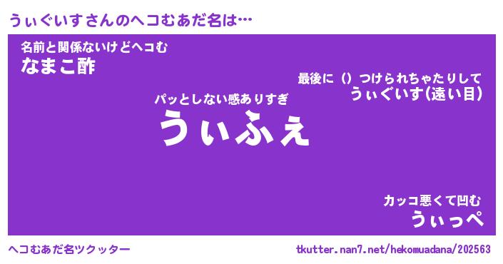 | 2回繰り返すあだ名 | 『うぃうぃ』『ううぃぃ』『ごみごみ』 |