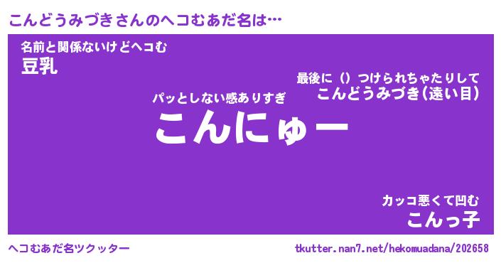 | 男性向けラノベタイトル風あだ名 | 『コンドウミヅキアートオンライン』 |