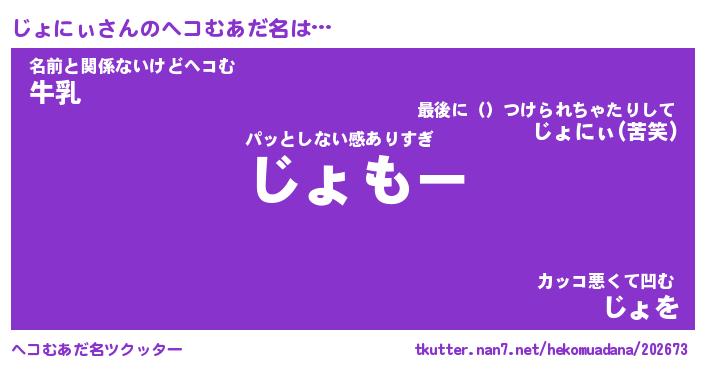 | 意味不明あだ名 | 『ペロリンじょにぃ』『永久保存じょにぃ』 |