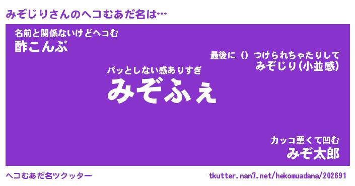 | 意味不明あだ名 | 『ペロリンみぞじり』『永久保存みぞじり』 |