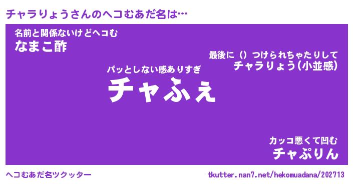 | ポケモン風あだ名 | 『チャチュウ』『チャラダネ』 |