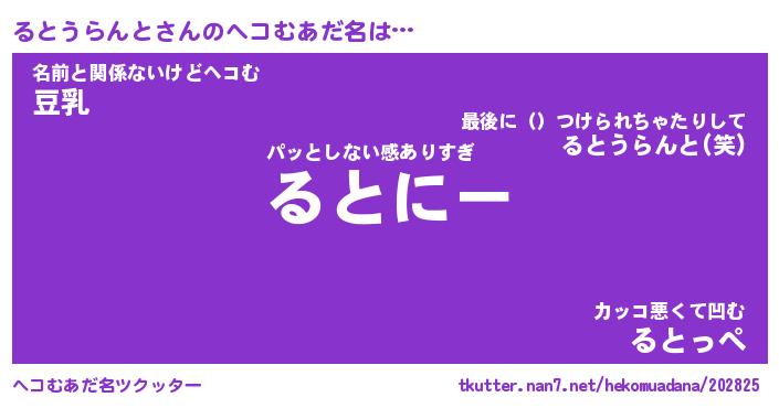 | 2回繰り返すあだ名 | 『るとると』『るるとと』『ぬるぬる』 |
