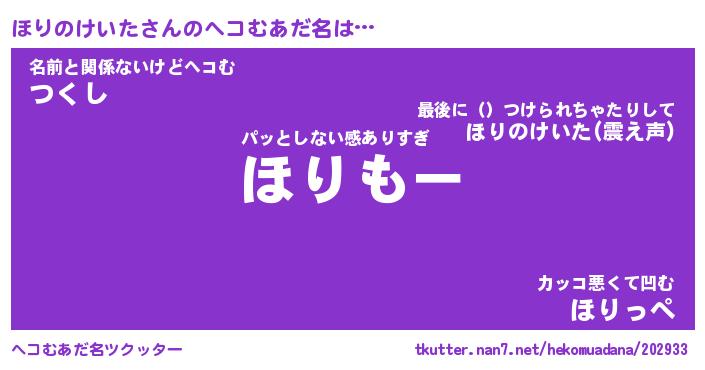 | ポケモン風あだ名 | 『ホリチュウ』『ホリノダネ』 |