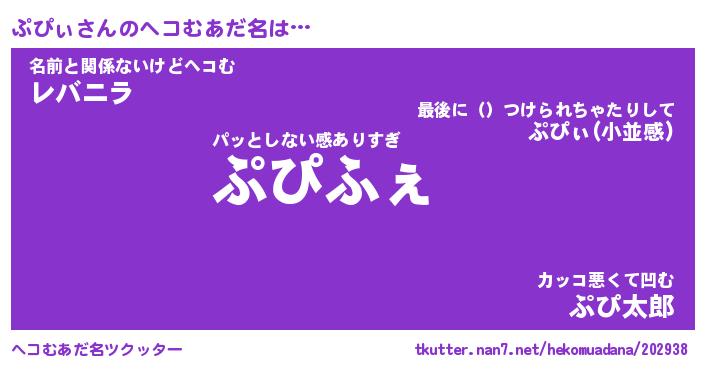 | ヒーロー風カッコイイあだ名 | 『スーパープピィ』『ウルトラぷぴぃマン』 |