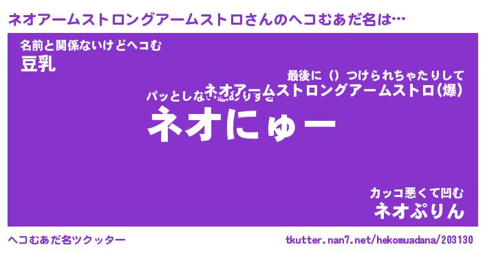 | 男性向けラノベタイトル風あだ名 | 『ネオアームストロングアームストロアートオンライン』 |