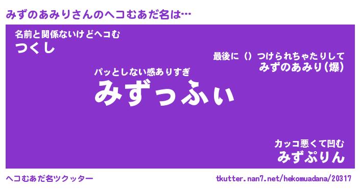 | 胡散臭い通販商品みたいなあだ名 | 『必ず成功する霊験あらたかなお札…その名も「みずのあみり」』 |