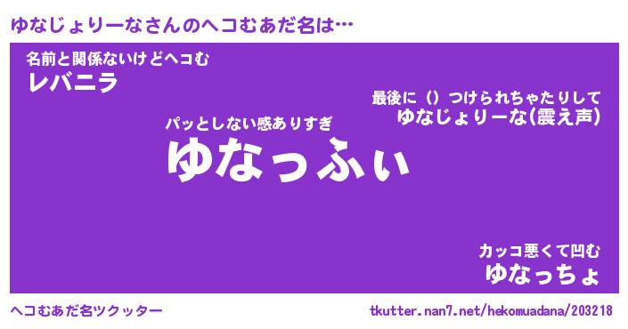 | 2回繰り返すあだ名 | 『ゆなゆな』『ゆゆなな』『いらいら』 |