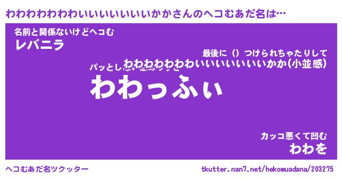| 胡散臭い通販商品みたいなあだ名 | 『必ず成功する霊験あらたかなお札…その名も「わわわわわわわいいいいいいいかか」』 |