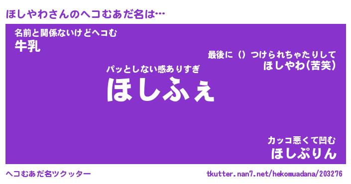 | 自動車の名前っぽいあだ名 | 『プリホシ』『ホクア』『デミホ』 |