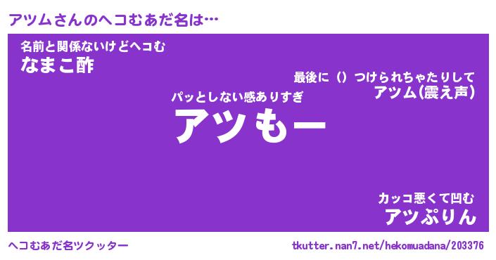 | ファンタジー風あだ名 | 『アツフェル』『エターナルアツムー』 |