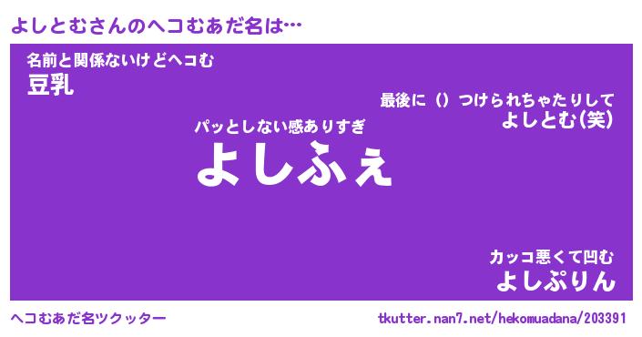 | ファンタジー風あだ名 | 『ヨシフェル』『エターナルヨシトムー』 |
