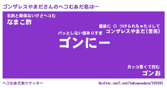 | 自動車の名前っぽいあだ名 | 『ゴンティマ』『ゴスラー』『ゴント』 |