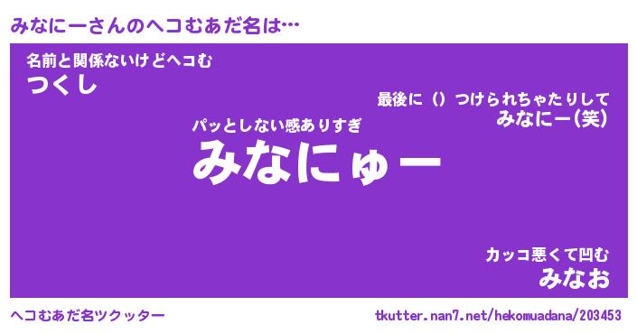 | 男性向けラノベタイトル風あだ名 | 『みなにーの憂鬱』 |