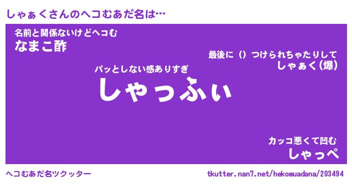 | ヒーロー風カッコイイあだ名 | 『スーパーシャァク』『炎刃騎士シャ』 |