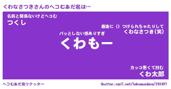 | ヒーロー風カッコイイあだ名 | 『スーパークワナサツキ』『魔戒騎士クワ』 |