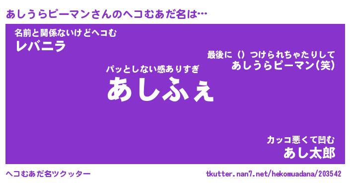 | ヒーロー風カッコイイあだ名 | 『スーパーアシウラピーマン』 |