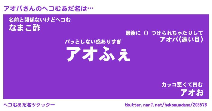 | ファンタジー風あだ名 | 『アオフェル』『エターナルアオバー』 |