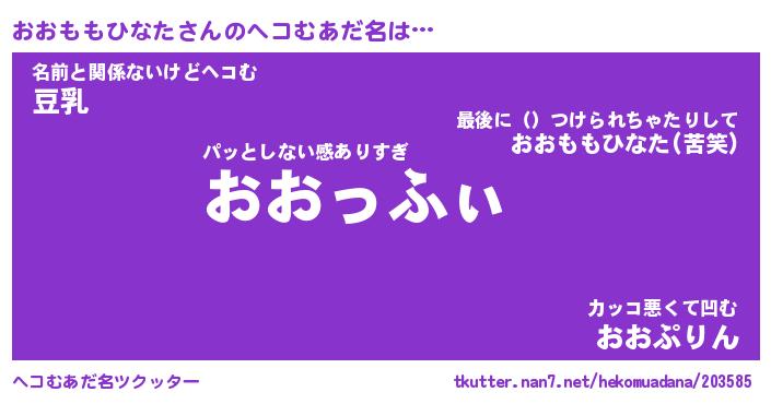 | 男性向けラノベタイトル風あだ名 | 『オオモモヒナタアートオンライン』 |