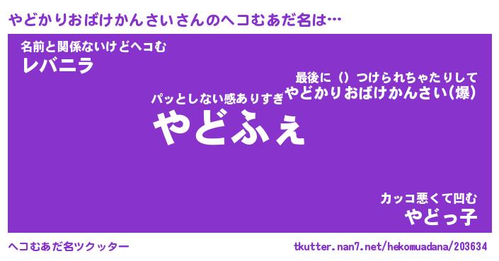 | 2回繰り返すあだ名 | 『やどやど』『ややどど』『ぬるぬる』 |