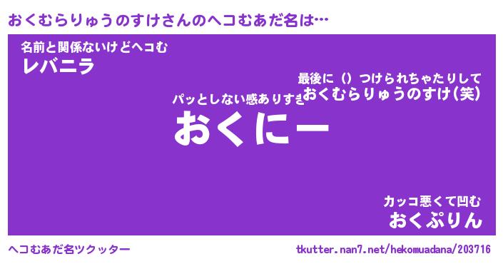 | 欧米人風あだ名 | 『マイケルおくむらりゅうのすけ』 |