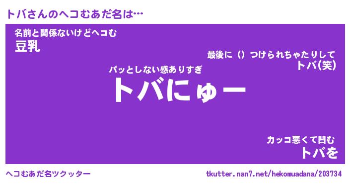 | ポケモン風あだ名 | 『トバチュウ』『トバダネ』『ヒトバ』 |