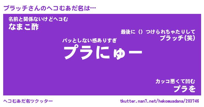| 男性向けラノベタイトル風あだ名 | 『プラッチの憂鬱』 |