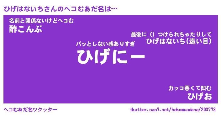 | 自動車の名前っぽいあだ名 | 『ヒゲティマ』『ヒスラー』『ヒンR』 |