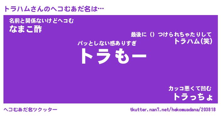 | 意味不明あだ名 | 『ペロリントラハム』『永久保存トラハム』 |
