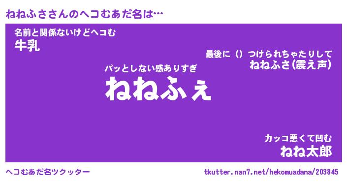 | ヒーロー風カッコイイあだ名 | 『スーパーネネフサ』『天弓騎士ネネ』 |