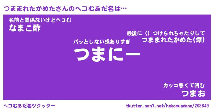 | 男性向けラノベタイトル風あだ名 | 『つままれたかめたの憂鬱』 |