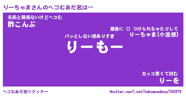 | 恥ずかしいあだ名 | 『プリティーりーちゃま』『りーっちょ』 |