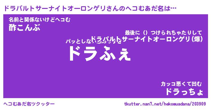 | ヒーロー風カッコイイあだ名 | 『スーパードラパルトサーナイトオーロンゲリ』 |