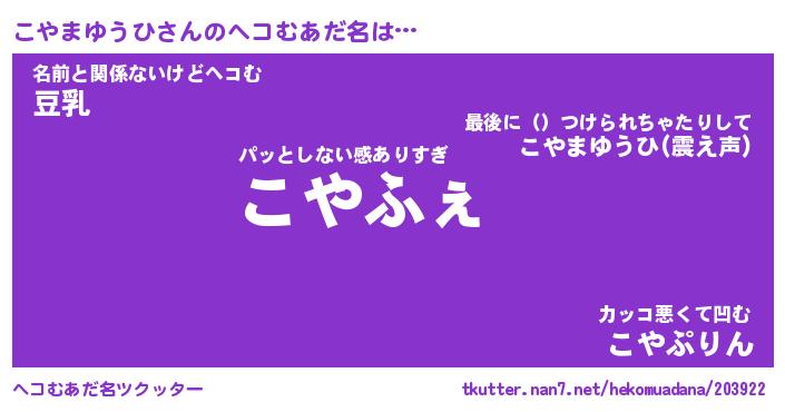 | 胡散臭い通販商品みたいなあだ名 | 『億万長者になれるブレスレット…その名も「こやまゆうひ」』 |