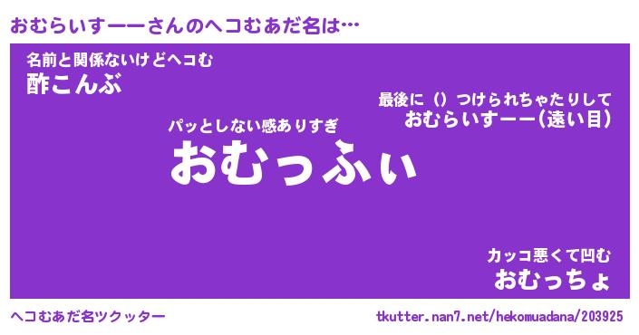 | 欧米人風あだ名 | 『マイケルおむらいすーー』 |