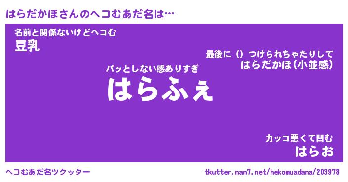 | ファンタジー風あだ名 | 『ハラフェル』『エターナルハラダカホー』 |