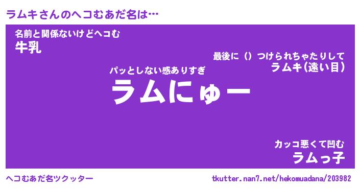 | ポケモン風あだ名 | 『ラムチュウ』『ラムキダネ』 |